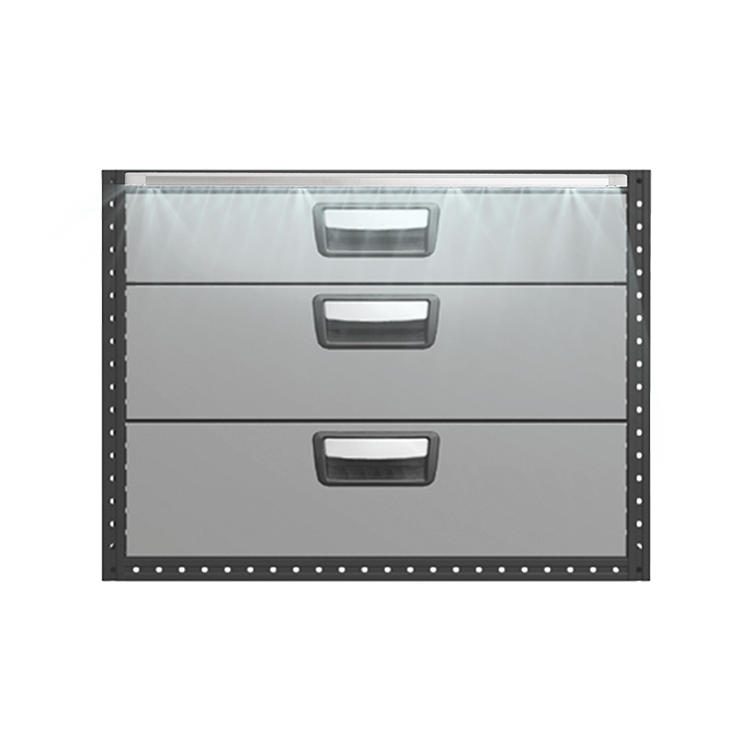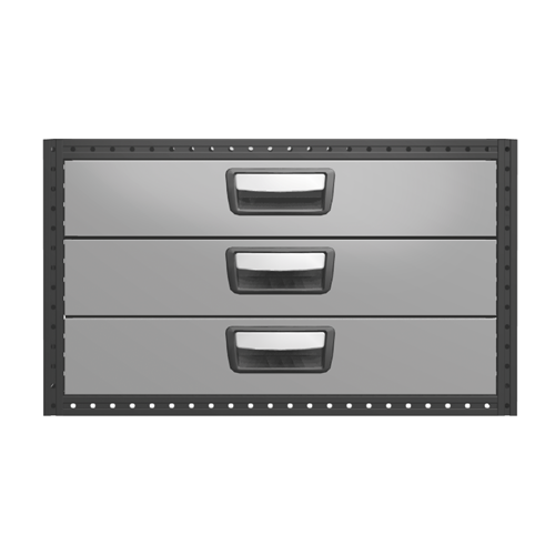 The drawer units are modular in width, depth and height, and can easily be combined with other products in the range. The frame's integrated T-tracks can be used for securing cargo, attaching accessories, and for versatile surface mounting. Each drawer is fitted with ball bearing runners as standard. The drawers are fully extendable and equipped with stoppers. To help optimise the weight, cover panels and tool boards are optional.