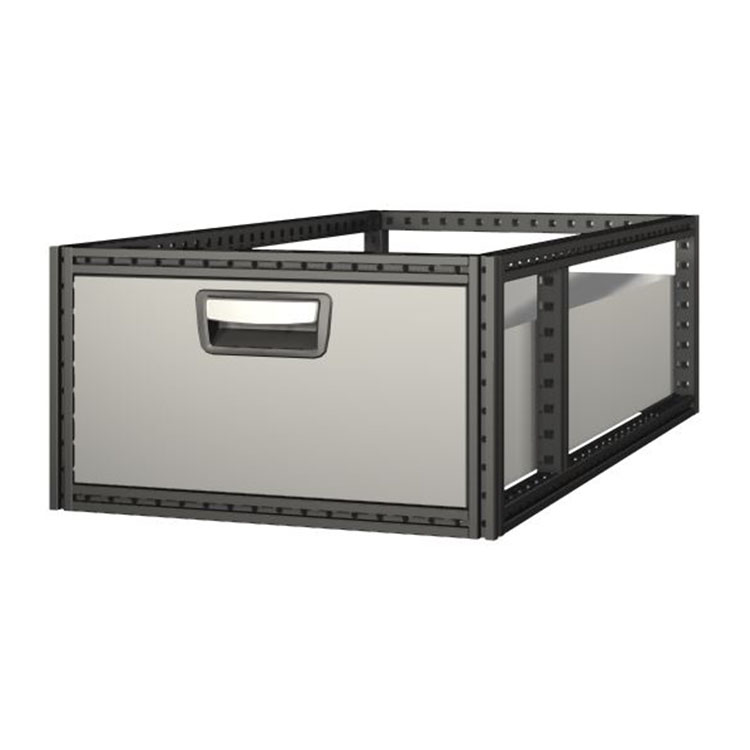 The extra-long drawers are designed for heavy, bulky items and have a load capacity of 80 kg per drawer, with a maximum of 200 kg per drawer unit. If rubberised inserts boards are used, the load capacity is increased to 100 kg per drawer. The drawers can be pulled out approx. 80 percent, and come in depths of up to 2 m. You can combine them freely to suit your cargo and vehicle perfectly. The drawers are equipped with ball bearings and a CRP (Crash Restraint Panel) as standard. The latter will prevent heavy loads from being propelled forward in the event of an accident.