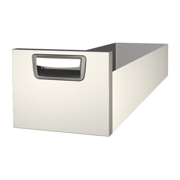 The extra-long drawers are designed for heavy, bulky items and have a load capacity of 80 kg per drawer, with a maximum of 200 kg per drawer unit. If rubberised inserts boards are used, the load capacity is increased to 100 kg per drawer. The drawers can be pulled out approx. 80 percent, and come in depths of up to 2 m. You can combine them freely to suit your cargo and vehicle perfectly. The drawers are equipped with ball bearings and a CRP (Crash Restraint Panel) as standard. The latter will prevent heavy loads from being propelled forward in the event of an accident.