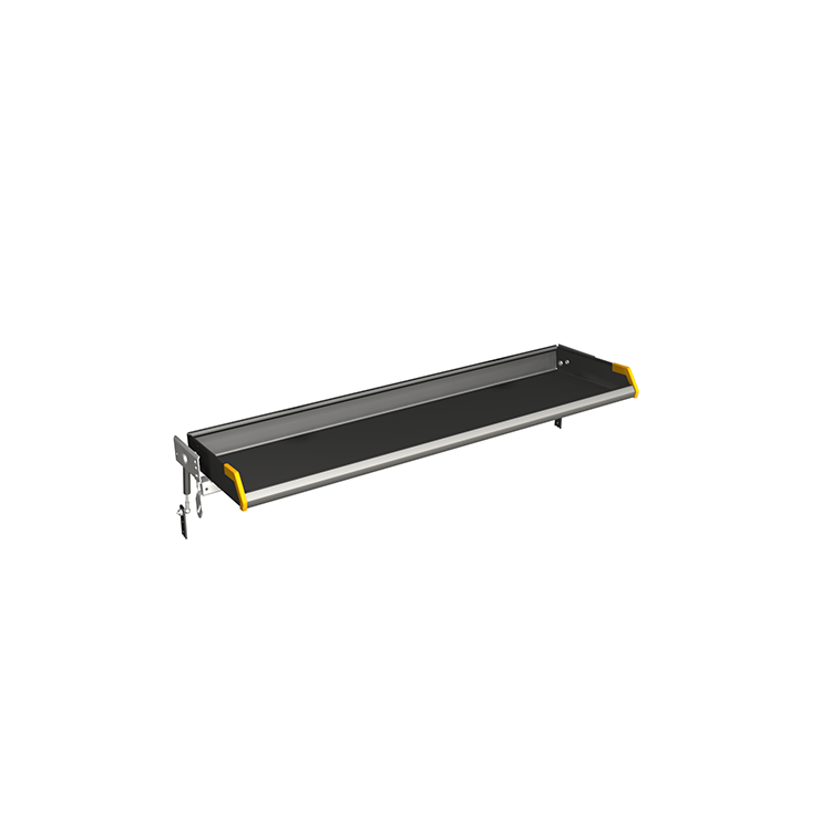 The folding shelves are available in several lengths to fit different vehicle models perfectly. To make them easy to operate, the shelves are equipped with gas struts as standard. The design with higher side and rear edges means packages stay securely on the shelves when the vehicle is being driven. The lower, specially designed, front edge facilitates unloading. Each shelf has a load capacity of 120 kg, and can be mounted with an incline if required.