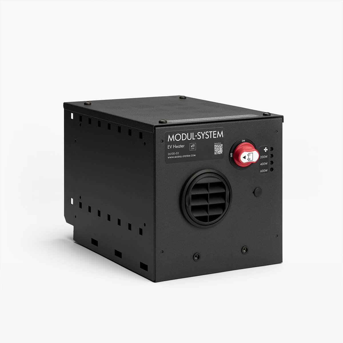 The EV Heater is Modul-System's unique 600W electric heater designed specifically for electric vehicles. The heater runs completely emission free and does not require a solid fuel supply or any external exhaust requirements.