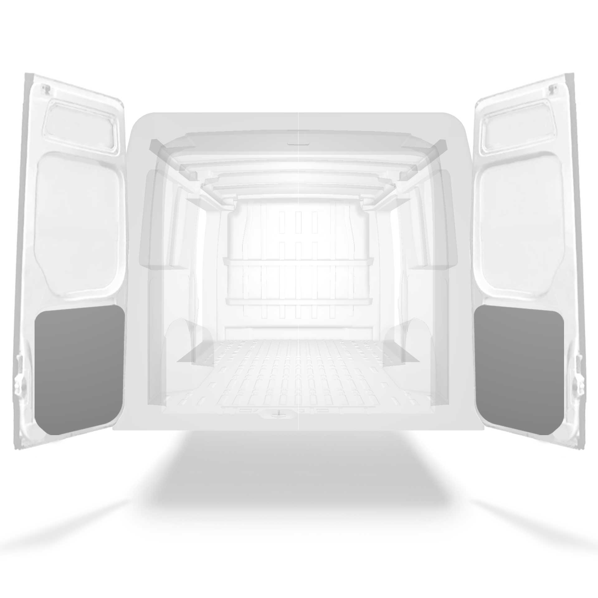 The rear door linings are designed and fabricated to fit in the sections of the rear door/tailgate of the vehicle to minimise weight. The liners protect the vehicle, create a bright working environment and are easy to wipe clean.