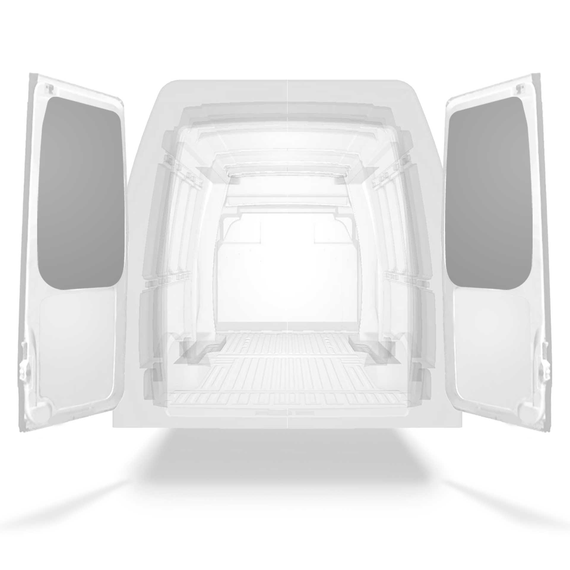 The rear door linings are designed and fabricated to fit in the sections of the rear door/tailgate of the vehicle to minimise weight. The liners protect the vehicle, create a bright working environment and are easy to wipe clean.