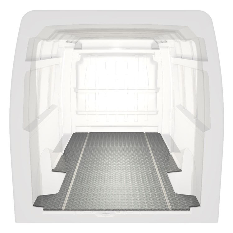 This extra-long van floor is installed using highly adhesive glue, which results in a stronger installation than nuts and bolts and protects the residual value of the vehicle.The extra-long floor modules facilitates installation.