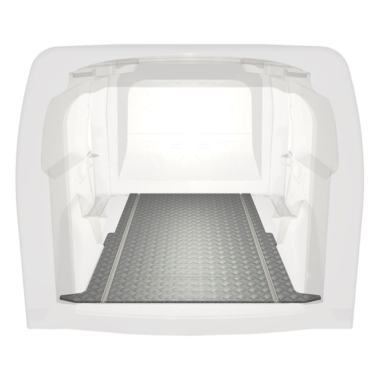 This extra-long van floor is installed using highly adhesive glue, which results in a stronger installation than nuts and bolts and protects the residual value of the vehicle.The extra-long floor modules facilitates installation.