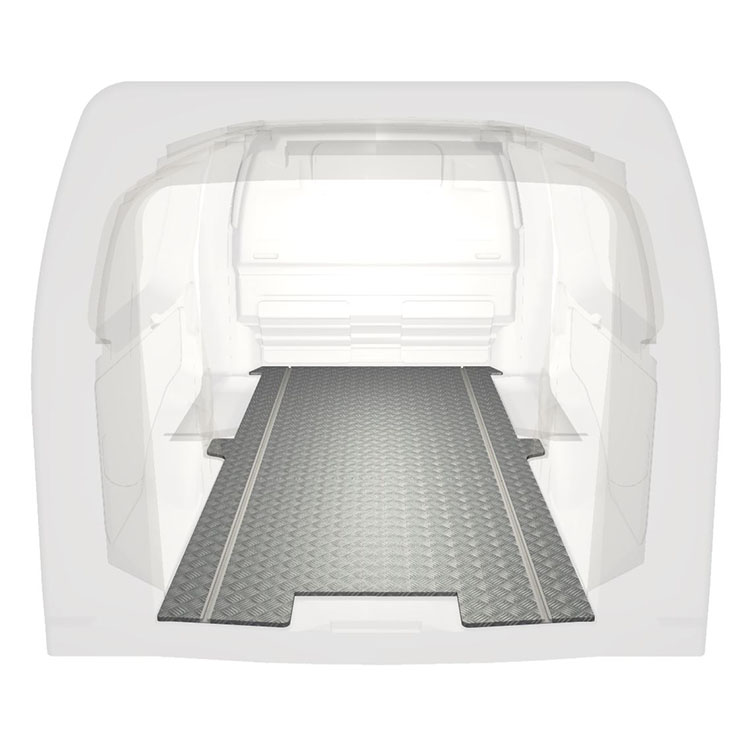 This extra-long van floor is installed using highly adhesive glue, which results in a stronger installation than nuts and bolts and protects the residual value of the vehicle.The extra-long floor modules facilitates installation.