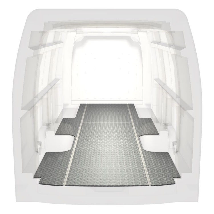 This extra-long van floor is installed using highly adhesive glue, which results in a stronger installation than nuts and bolts and protects the residual value of the vehicle.The extra-long floor modules facilitates installation.