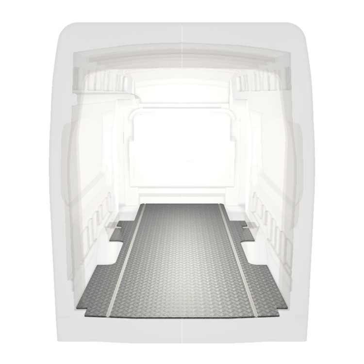 This extra-long van floor is installed using highly adhesive glue, which results in a stronger installation than nuts and bolts and protects the residual value of the vehicle.The extra-long floor modules facilitates installation.