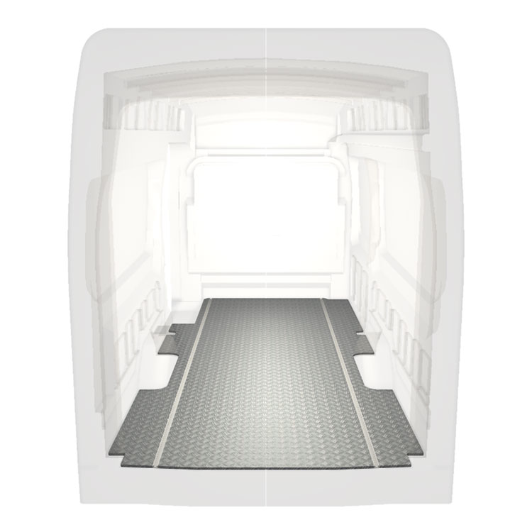This extra-long van floor is installed using highly adhesive glue, which results in a stronger installation than nuts and bolts and protects the residual value of the vehicle.The extra-long floor modules facilitates installation.
