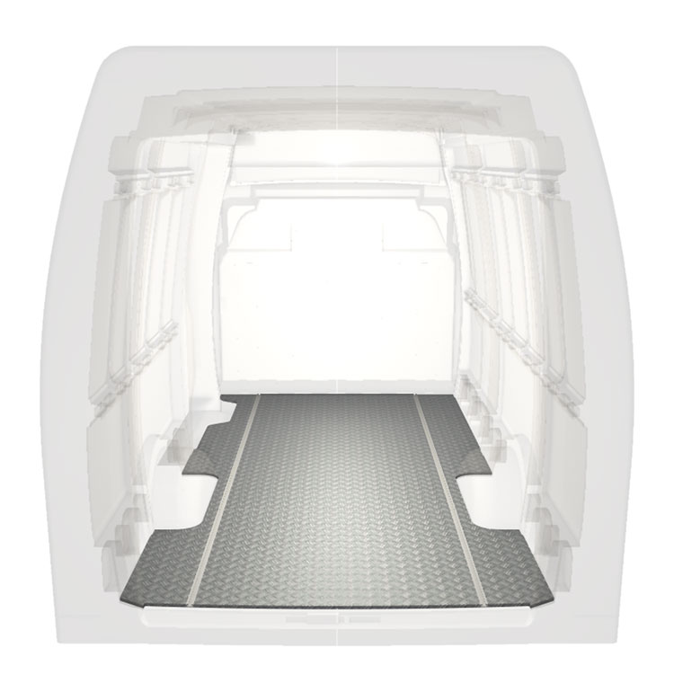 This extra-long van floor is installed using highly adhesive glue, which results in a stronger installation than nuts and bolts and protects the residual value of the vehicle.The extra-long floor modules facilitates installation.
