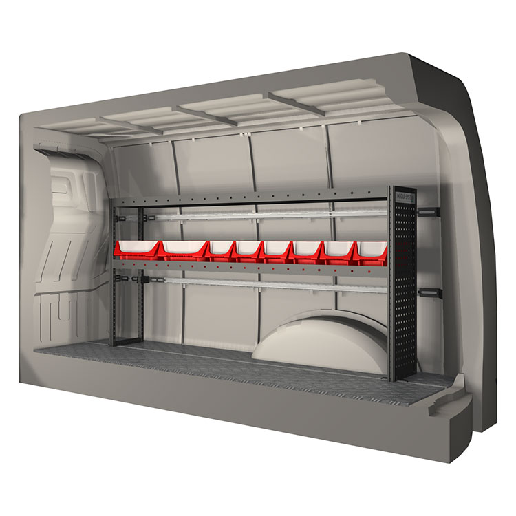 The racking has been specially designed to ensure the optimum fit to the vehicle, as well as the best possible functionality and safety. It has been developed for professional use, is flexible and is intended for service jobs in various types of business. All shelves are equipped with rubber mats, and all drawers with foam plastic liners. Assembly material is included.
