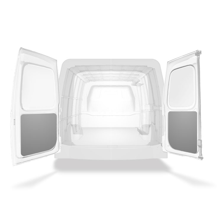 The rear door linings are designed and fabricated to fit in the sections of the rear door/tailgate of the vehicle to minimise weight. The liners protect the vehicle, create a bright working environment and are easy to wipe clean.