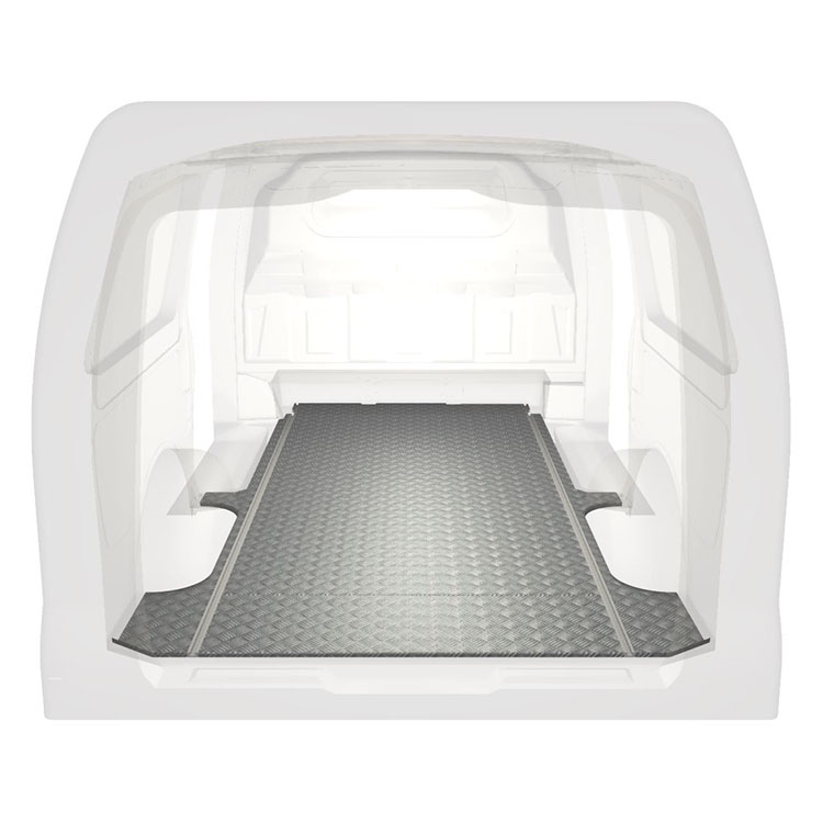 This extra-long van floor is installed using highly adhesive glue, which results in a stronger installation than nuts and bolts and protects the residual value of the vehicle.The extra-long floor modules facilitates installation.