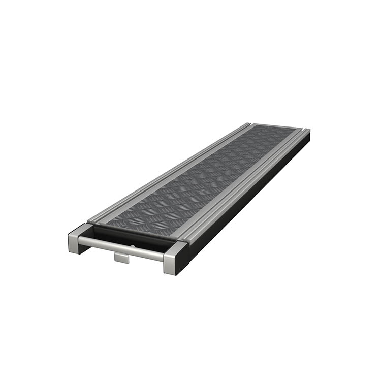 The platform's integrated T-track rails can be used for securing racking products or other cargo.