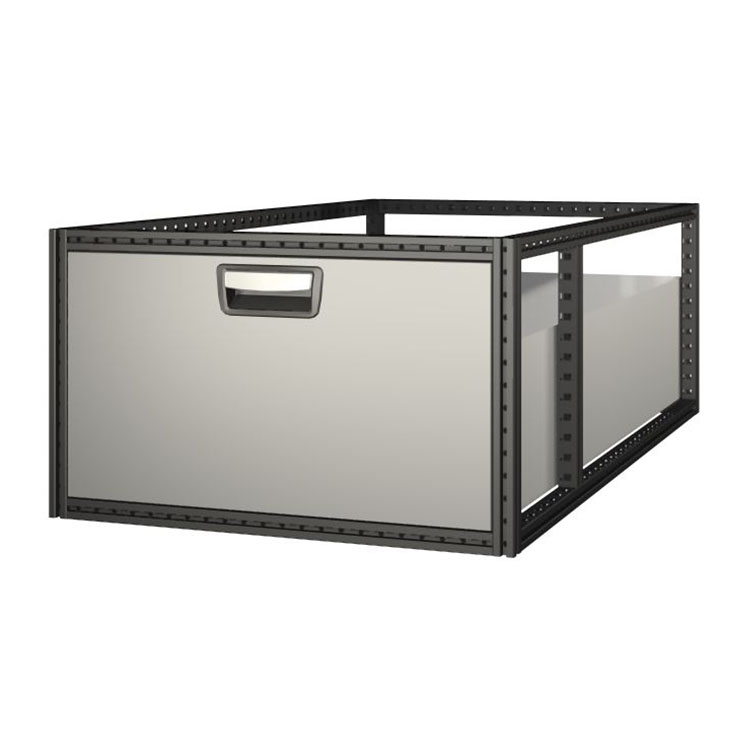 The extra-long drawer units have a frame from ultra-high strength steel and drawers from aluminium. The drawers are equipped with ball bearings as standard, and the mix from fixed and flexible bearings makes them both stable and easy to operate.