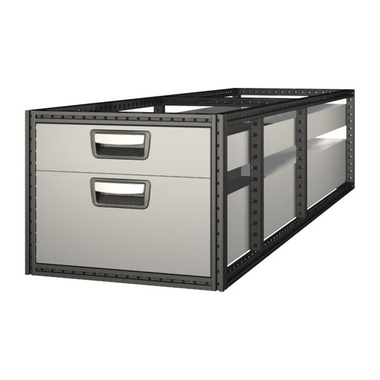 The extra-long drawer units have a frame from ultra-high strength steel and drawers from aluminium. The drawers are equipped with ball bearings as standard, and the mix from fixed and flexible bearings makes them both stable and easy to operate.