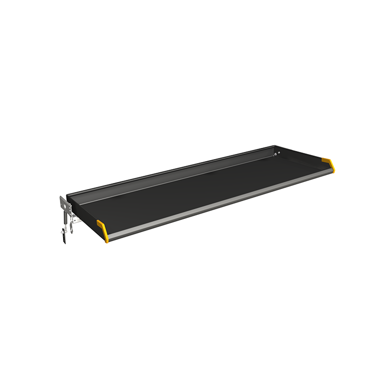 The folding shelves are available in several lengths to fit different vehicle models perfectly. To make them easy to operate, the shelves are equipped with gas struts as standard. The design with higher side and rear edges means packages stay securely on the shelves when the vehicle is being driven. The lower, specially designed, front edge facilitates unloading. Each shelf has a load capacity of 120 kg, and can be mounted with an incline if required.