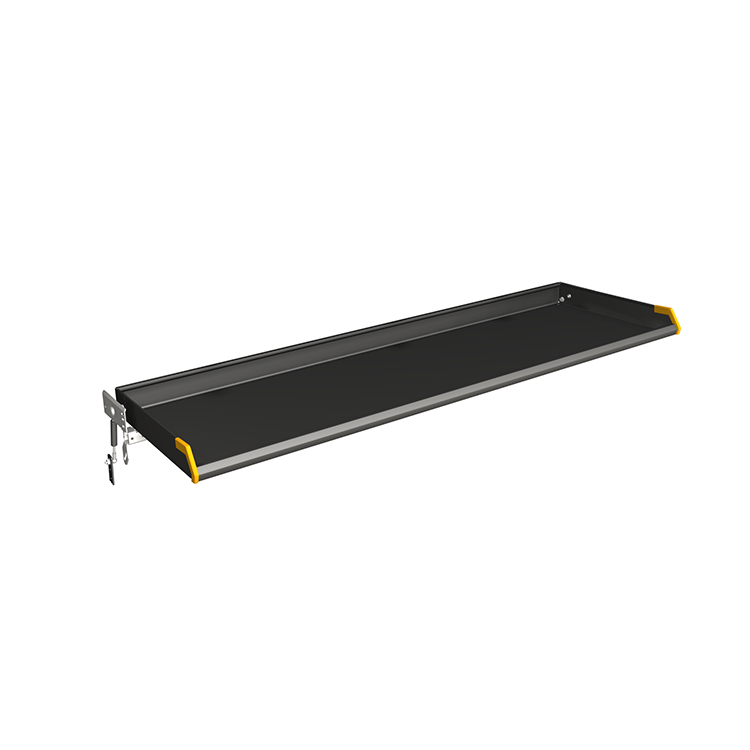 The folding shelves are available in several lengths to fit different vehicle models perfectly. To make them easy to operate, the shelves are equipped with gas struts as standard. The design with higher side and rear edges means packages stay securely on the shelves when the vehicle is being driven. The lower, specially designed, front edge facilitates unloading. Each shelf has a load capacity of 120 kg, and can be mounted with an incline if required.