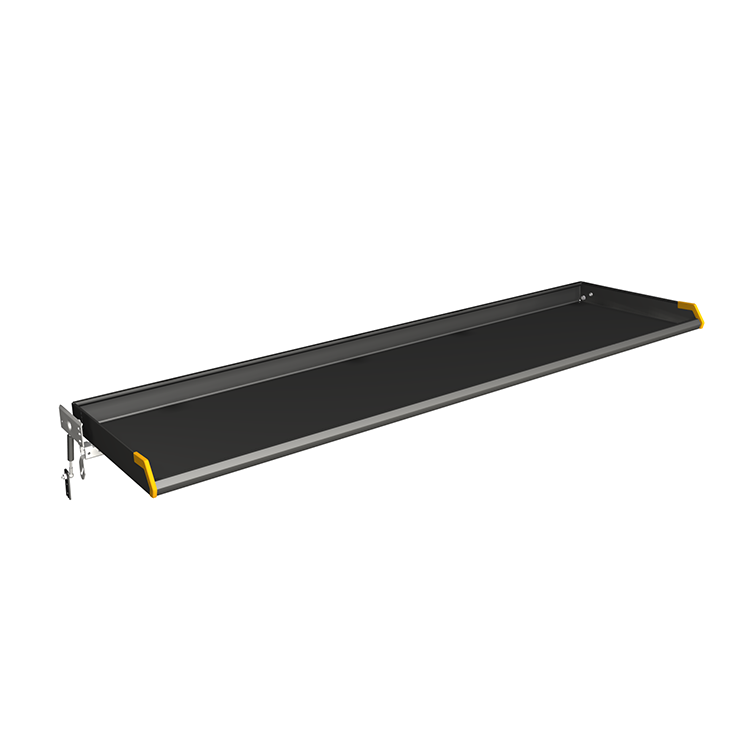 The folding shelves are available in several lengths to fit different vehicle models perfectly. To make them easy to operate, the shelves are equipped with gas struts as standard. The design with higher side and rear edges means packages stay securely on the shelves when the vehicle is being driven. The lower, specially designed, front edge facilitates unloading. Each shelf has a load capacity of 120 kg, and can be mounted with an incline if required.