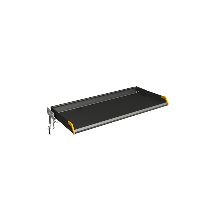 The folding shelves are available in several lengths to fit different vehicle models perfectly. To make them easy to operate, the shelves are equipped with gas struts as standard. The design with higher side and rear edges means packages stay securely on the shelves when the vehicle is being driven. The lower, specially designed, front edge facilitates unloading. Each shelf has a load capacity of 120 kg, and can be mounted with an incline if required.