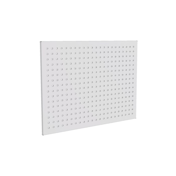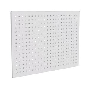 The tool board is designed for mounting on a wall. The metal plate is punched with 9 mm holes at 34 mm pitch spacing. With the addition of tool holders it provides a flexible system for tool storage, etc.