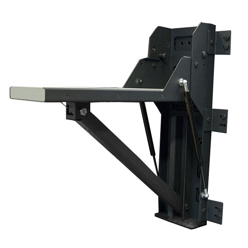 Folding vice platform in robust design with a bench top made from sandwich material. The ergonomic design with gas struts allows for easy use. The platform is mounted to the racking. Assembly material is included.