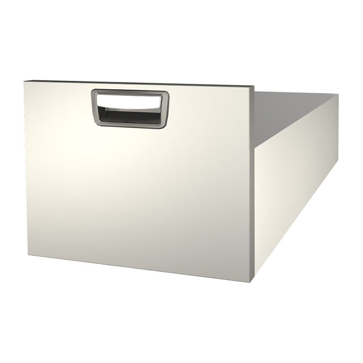 Robust extra-long drawer for assembly in a drawer unit frame. The drawer, made from aluminium, has ball bearings as standard and the mix of fixed and flexible bearings makes the drawer stable and easy to operate.
