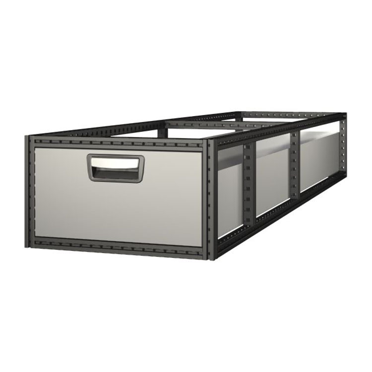 The extra-long drawer units have a frame from ultra-high strength steel and drawers from aluminium. The drawers are equipped with ball bearings as standard, and the mix from fixed and flexible bearings makes them both stable and easy to operate.
