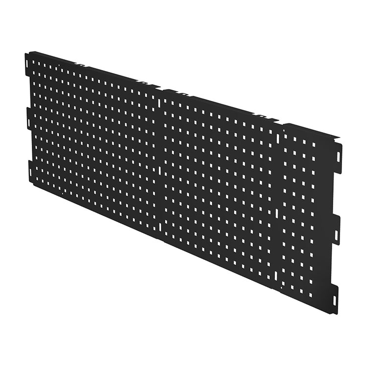 Tool board for extra-long drawer unit. It protects the drawer while contributing to a nice design. The tool board is punched with 9 mm holes at 34 mm pitch spacing, which permits attachment of tool holders and other accessories. Installed using screws (not included).