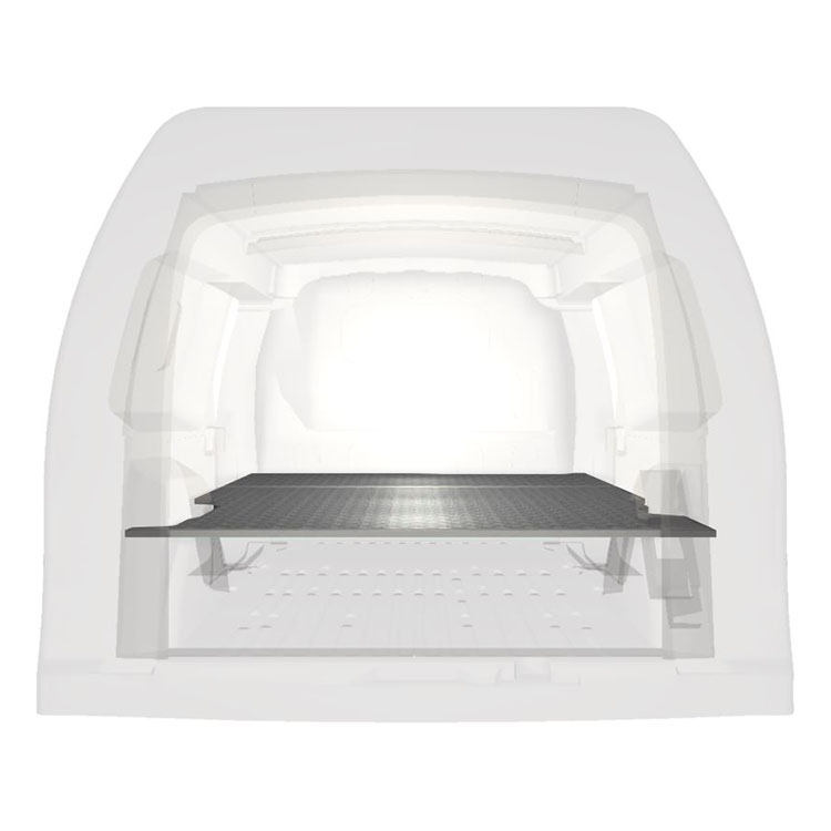Double floor for a Mercedes Citan/Renault Kangoo L2 2010-. The floor is designed to fit an extra-long drawer solution with one drawer unit 486x1296x270 and one 648x1296x270 coming out from the rear doors, and one drawer unit 486x1296x270 coming out from the side door.