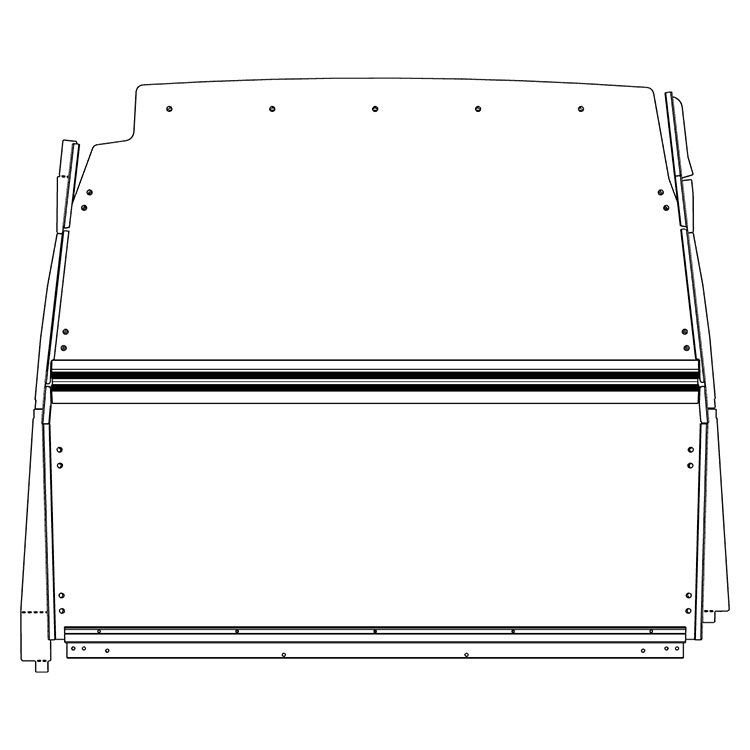 The bulkhead, made from sandwich material, is designed to optimize the space for the driver. The connection profile on the middle has a M8 t-tack, which can be utilized for attaching racking or other accessories.
