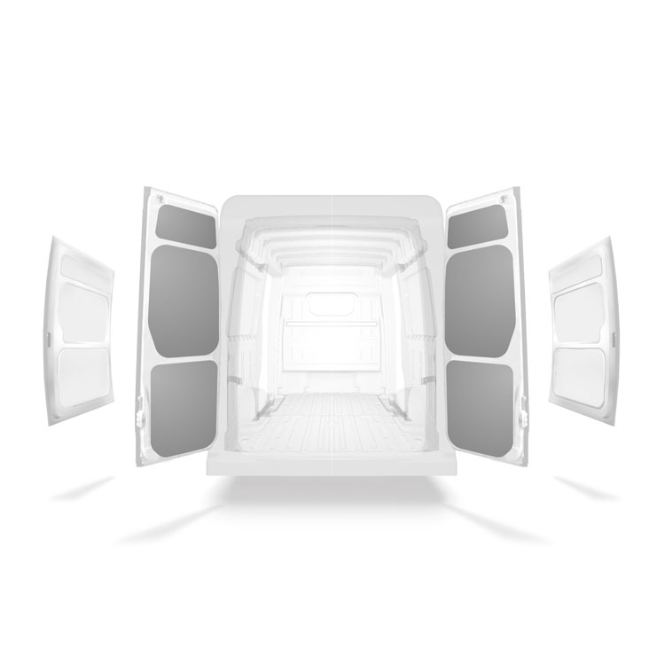 The rear door linings are designed and fabricated to fit in the sections of the rear door/tailgate of the vehicle to minimise weight. The liners protect the vehicle, create a bright working environment and are easy to wipe clean.